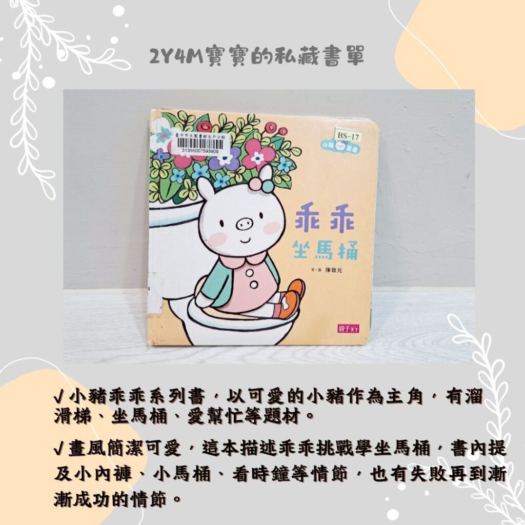 《小豬乖乖:乖乖坐馬桶》是小豬乖乖系列書,以可愛的小豬作為主角,有溜滑梯、坐馬桶、愛幫忙等題材,可供延伸閱讀的選項非常多。