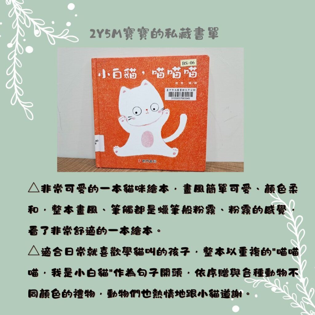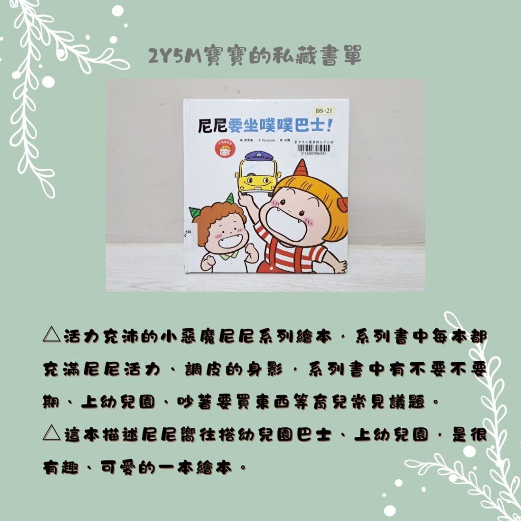 我家孩子目前2Y5M大,目前的書單都是我自己跑圖書館、自己選書的。這次2Y5M時期閱讀到的書單量比較多,怕在同一篇閱讀起來會太負荷,所以會分成3篇文做分享,每篇分享5-6本書。