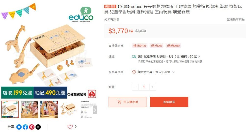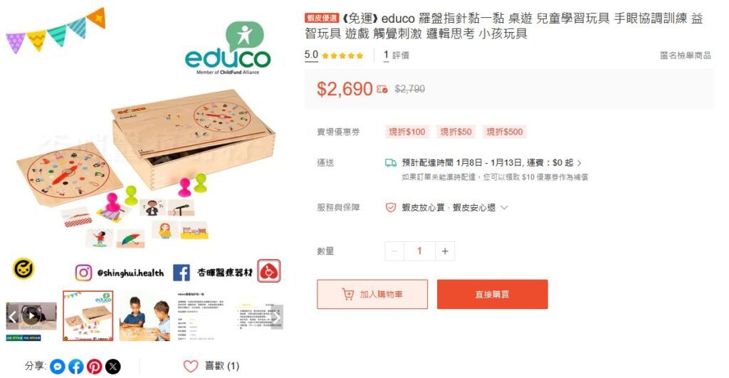 除了在童心園可買到外,在MOMO、蝦皮上也能買到該品牌的教玩具(新品、二手品皆有,數量算蠻多的)。