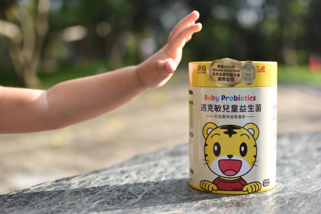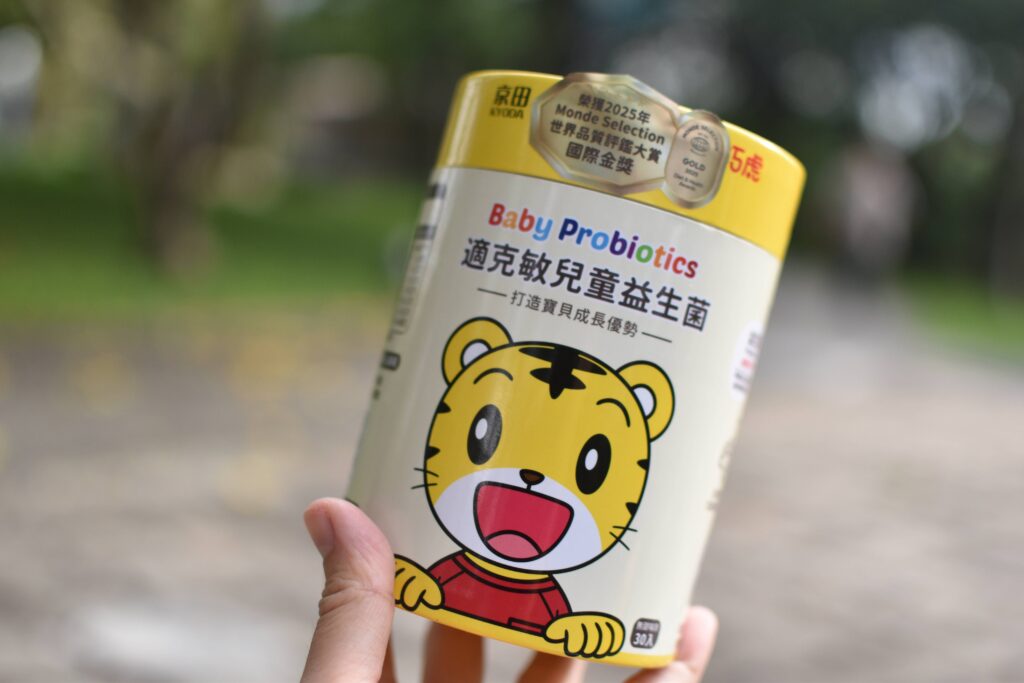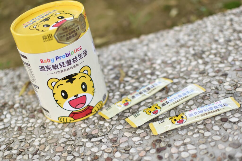 京田KYODA的巧虎適克敏兒童益生菌產地是台灣,六個月以上的兒童就可以使用。
