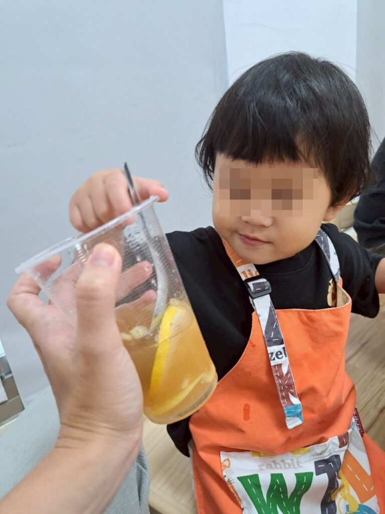 搓愛玉的部分也很簡單,可惜我家寶寶還是小了點(畢竟這課程年齡下限是2歲0個月,上限年齡到6歲,參加的小孩成熟度還是差很多的)、興趣缺缺,後來主要還是我搓,不過有參加到就很不錯了。
