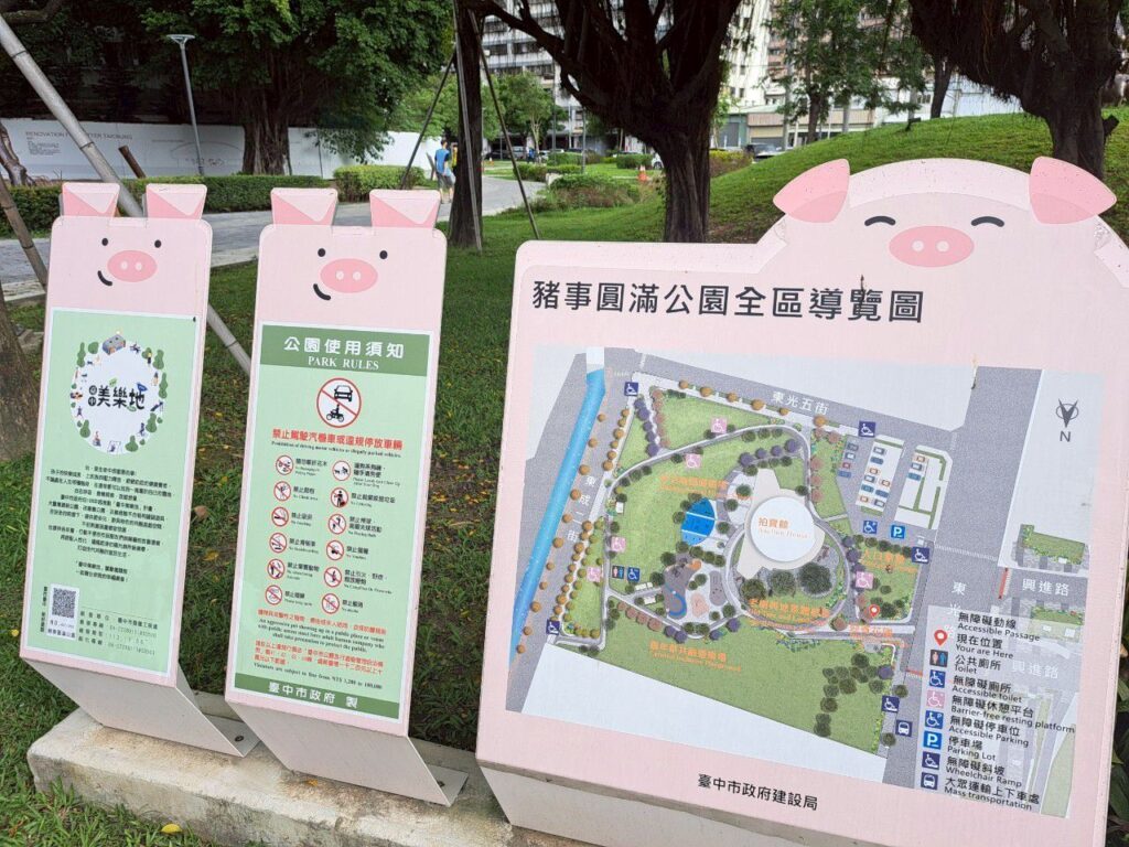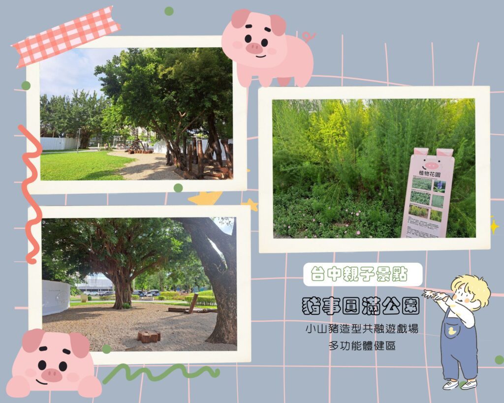 台中親子景點 豬事圓滿公園,有小山豬造型共融遊戲場與多功能體健區