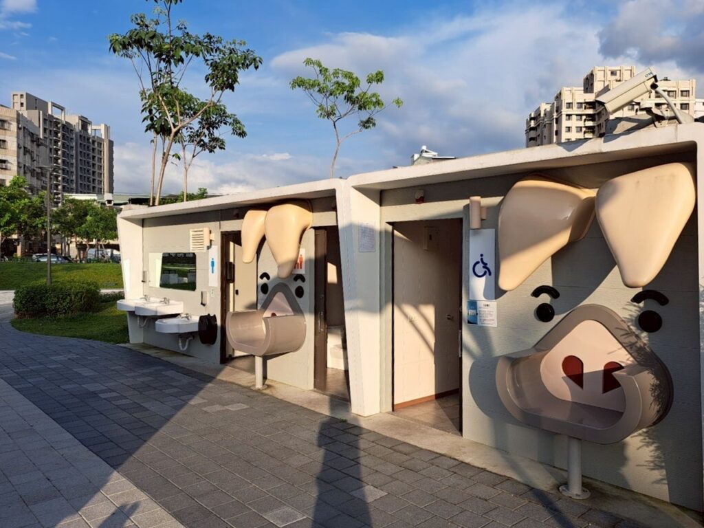 豬事圓滿公園 全區主要分成遊樂設施與健體區,輔以一些綠植造景的美化。園區內隨處可見小豬造型的雕像、公廁也是小豬造型,遊樂區內的溜滑梯、攀爬架,也是巨大的小豬造型,非常可愛!