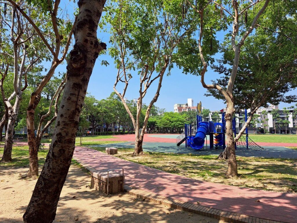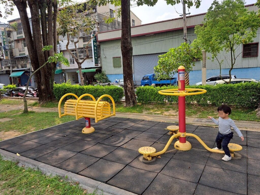 這個遊樂設施旁就是跑道,附近也蠻多樹蔭及座椅的,又鄰近廁所,還算挺方便的。