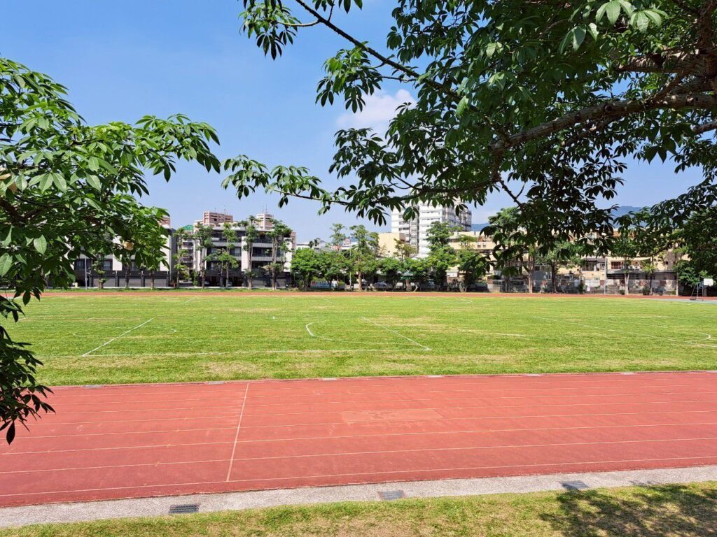 很大的操場,下班時段至晚間都能看到很多人來散步、跑步(下圖是平日中午來的,沒人XD),真的是當地居民下班後運動的好去處呢!